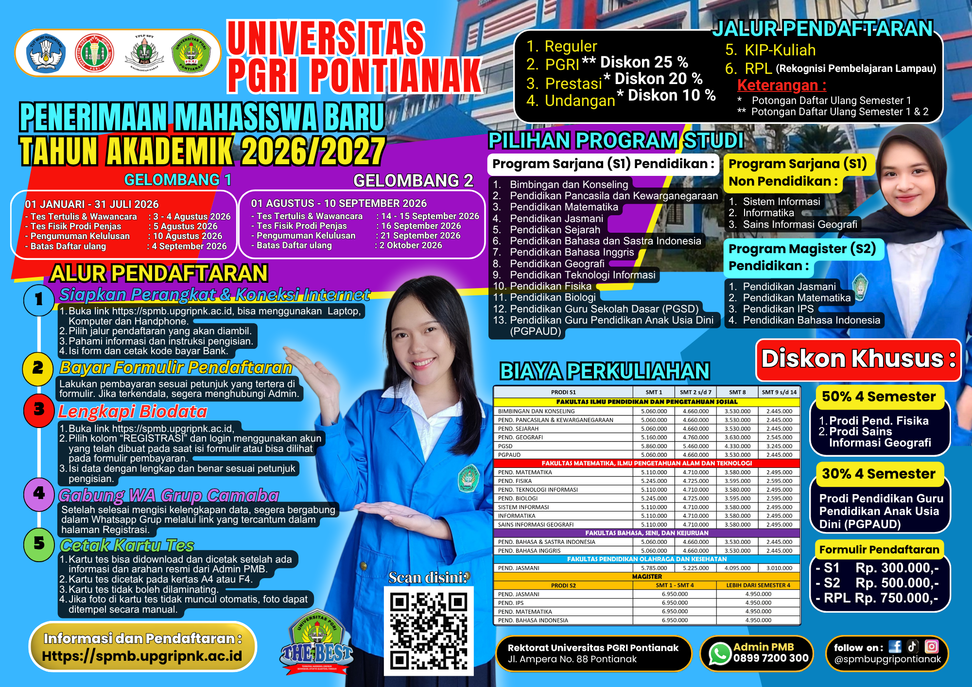 Seleksi Penerimaan Mahasiswa Baru (SPMB) Universitas PGRI Pontianak Tahun 2026 membuka kesempatan bagi generasi muda untuk menempuh pendidikan tinggi yang berkualitas, berkarakter, dan berorientasi masa depan. Universitas PGRI Pontianak berkomitmen mencetak lulusan yang unggul, adaptif, serta siap bersaing di dunia kerja melalui pembelajaran inovatif, dosen profesional, dan lingkungan akademik yang kondusif.